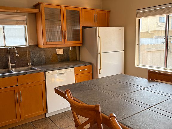 Step into this charming end-unit duplex that blends classic character with modern comfort. Featuring beautiful original restored hardwood floors, an inviting eat-in kitchen with a built-in high top table and chairs, and plenty of natural light, this single-story home feels both cozy and spacious. Central heating and air conditioning ensure year-round comfort, while the private Saltillo-tiled patio is perfect for morning coffee, outdoor dining, or weekend relaxing. Thoughtful touches like in-unit laundry and wood blinds throughout make this home as functional as it is delightful.