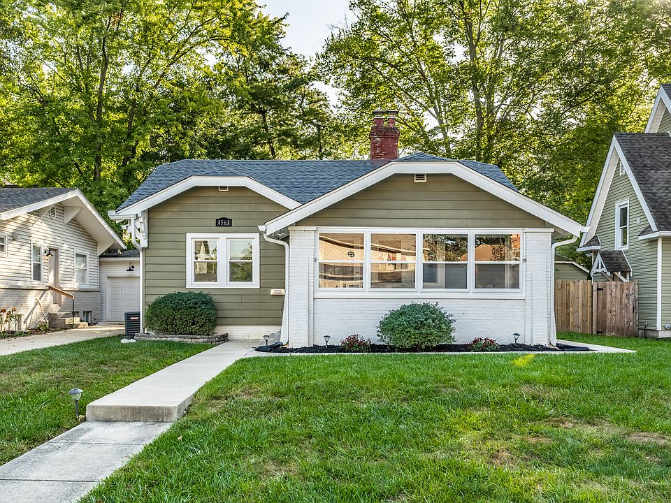 Welcome to this charming Meridian Kessler bungalow, blending original character with thoughtful updates. Featuring 3 bedrooms, 1 full bath, and 2 half baths, this home boasts hardwood floors, abundant natural light, and a fireplace with gas accessibility. The updated kitchen opens to a spacious dining room, complete with a coffee bar and a bright sunroom nook-perfect for cozy mornings or entertaining dinner parties. Recent updates include a brand-new roof and gutters on the home and garage, new main-level windows, maintenance-free Trex decking, new concrete walkway, and a new lateral sewer line providing peace of mind for years to come. Enjoy outdoor living with your large deck, garden space with irrigation, privacy fence, and detached garage. The full basement adds valuable storage and opportunity to create your own home gym or second living space. Steps from the Monon Trail, local restaurants, and a quick commute to downtown Indy makes this a truly special place to call home.