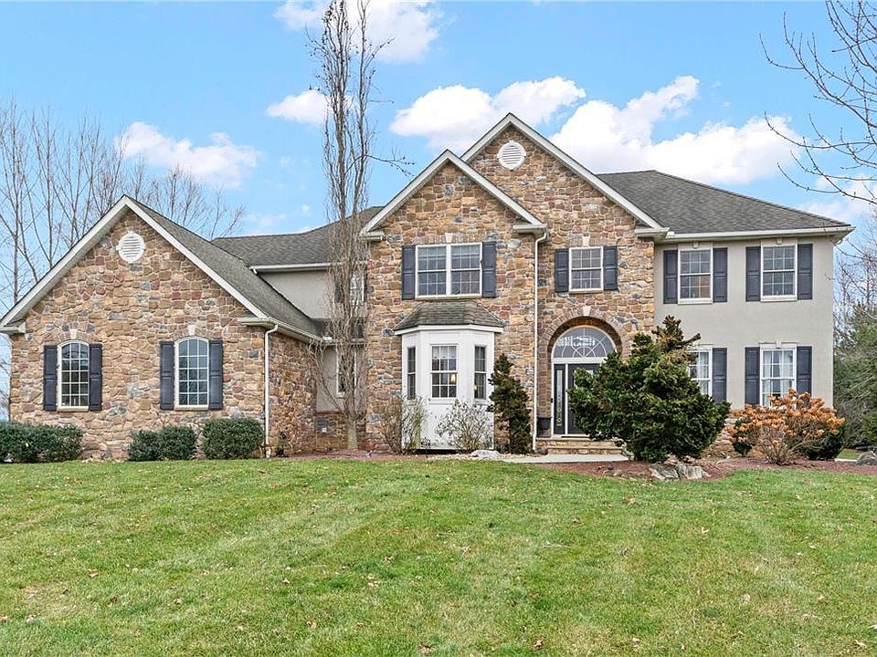 *HIGHEST & BEST DEADLINE 2/6 at 10am * Located in sought after Nazareth Area School District, this beautiful 4BR 3.5BA center-hall colonial is situated on just under 1.5 acres. Step inside and be greeted by the warmth of this sprawling home w/ versatile floorplan.  Hardwood floor throughout most of first floor. Spacious kitchen featuring granite countertops, double oven, cooktop, sub zero refrigerator, seating at the center island and a separate eating area. There is a pass through to what is currently an second office, but could be a bright and sunny breakfast room, sunroom, playroom or more.  Warm family room with gas fireplace and soaring ceilings. Double doors lead to office.  First floor powder room w/side door to side yard.  Formal dining room w/tray ceiling, formal living room and laundry complete the first floor.  Second floor you have the master suite with tray ceiling, sitting room & en suite bathroom, two walk in closets w/custom shelving."Jack and Jill" bedrooms flank set full bath in between and an additional bedroom with full bathroom. Finished basement offers additional rec room w/ electric fireplace, wet-bar &  counter seating, large exercise room which could serve other needs as well. Outdoor entertaining will be a joy in the inviting backyard. Trex deck off the back of the house leads to the in-ground saltwater pool, gazebo with firepit, and plenty of seating space around the pool. Storage shed and plenty of yard to still play. 3-car attached garage.