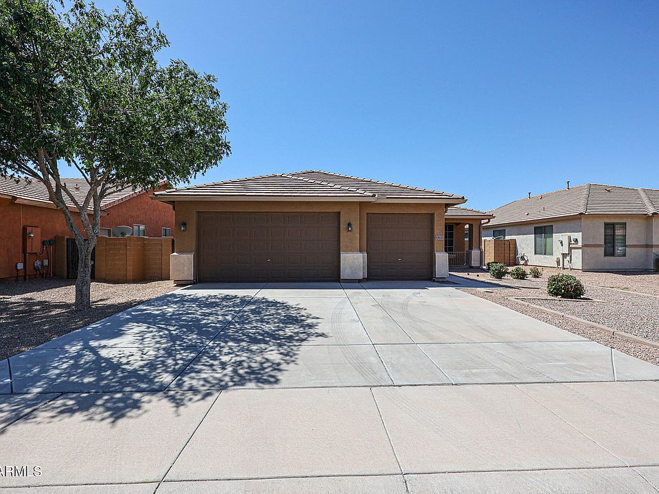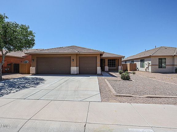Discover this beautifully remodeled single-level home featuring 3 bedrooms, a den, and 2 bathrooms, nestled in the desirable Maricopa Meadows community. Enjoy fresh interior paint, upgraded wood and tile flooring throughout, and a modernized kitchen with brand-new stainless steel appliances. The spacious primary suite offers dual walk-in closets with custom built-ins, an en-suite bath with dual sinks, a separate shower and tub, and direct access to the backyard. A three-car garage with built-in cabinetry provides ample storage. The expansive backyard is perfect for entertaining or play, with endless possibilities for customization. Located close to top-rated schools and the popular Copper Sky Park and Recreation Complex, this home blends comfort, style, and convenience.