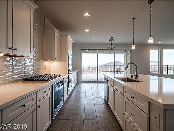 New construction home in gated community elevated high above the Las Vegas Valley with breathtaking strip,valley and mountain views. Single story style living with the Master Bedroom, 2nd BR/BA & Den downstairs plus a Bonus Room, 2 more BR & BA upstairs & Covered Balcony to enjoy the views. Luxury upgrades include white shaker cabinets, quartz countertops, tile flooring & gourmet kitchen with double ovens & oversized refrigerator.