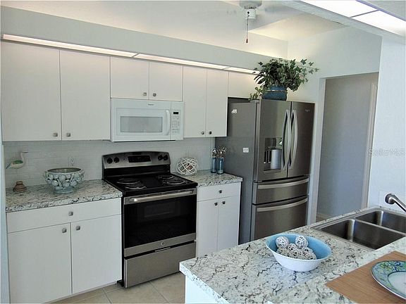 Pool home with brand new roof and windows! Oversized 10,000 sq ft property with pool. The high ceiling entryway greets you in this beautiful well cared for home. Once inside you look over the living room to see out large sliding glass doors to the pool. High ceilings gives you a roomy feeling. Kitchen with breakfast bar overlooks the dining and great room areas. Split plan has master bedroom with walk in closet. Master bath, walk in shower. Master bedroom has door leading out to the large covered lanai and pool area. On other side of home, two guest bedrooms, both have walk in closets. One guest room has door leading out to pool area. Guest bath also has a door to the pool area. Large tile throughout the living spaces of the home. Newer: Kitchen counter tops, kitchen backsplash, bedroom rugs, refrigerator, guest bath vanity. Near local beaches (8 minute drive to Manasota Public Beach). Close to shopping. With voluntary South Venice Civic Association, paid fees gives access to Private Boat Ramp and/or Private Ferry to Private Beach (4 minute drive away). No deed restrictions. Highest and best offers due by Sunday 12pm.
