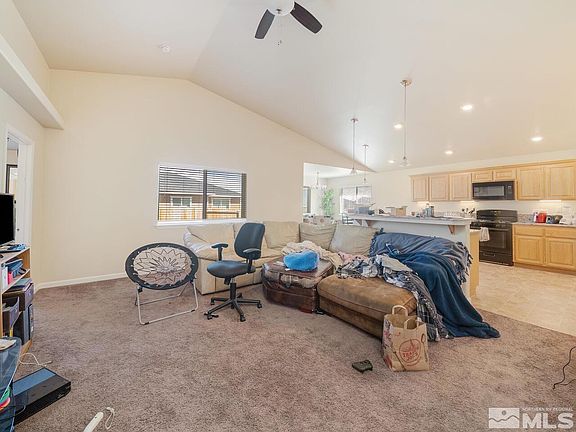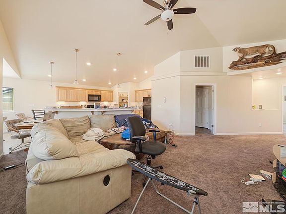 Positioned on a pleasant street within the popular Donner Trails community in Fernley, this beautiful 3-bed, 2-bath residence is the perfect balance of space and comfort. Boasting an open-concept floorplan, the interior of this single story home offers more than 1500 sq ft of quiet, private living space with sought-after amenities that include tall ceilings, recessed lighting, and large windows., Ideal for the at-home chef, or anyone who enjoys entertaining, the generous kitchen provides an abundance of cabinetry with gorgeous countertops, built-in microwave, full pantry for extra storage, and a broad wrap-around island with additional seating capacity. The adjoining dining room features two large windows that overlook the rear yard and a sliding glass door that opens to an alcove covered patio – the ultimate spot to relax and take in a little fresh air any time of year. New owners are sure to appreciate the two spacious guest rooms as well as the master bedroom which comes fully equipped with a walk-in closet and ensuite bathroom with double sinks and a tub/shower combo. Surrounded by low-maintenance landscaping with a xeriscaped front yard, the rear yard is a blank slate for folks to create an exterior they’ve always wanted. Located within proximity of local schools, parks, and popular shopping centers, this property also offers quick and easy access to Main St/Hwy 50. Gently lived-in at an affordable price, this home is guaranteed to impress and will not last on the market long. So, don’t hesitate – schedule your showing today!