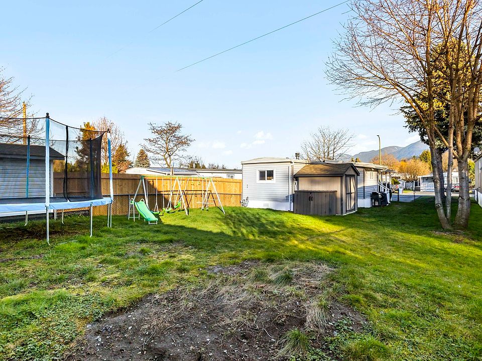 COMPLETLEY renovated mobile home with a MASSIVE YARD in Westwood Estates, a family friendly complex right next to Garrison Crossing! With modern finishes, and all the big ticket items updated, this is truly a turn key home. New ROOF, exterior siding, flooring throughout, washer / dryer, hot water tank, fresh pain throughout and stainless steel appliances! 2 bedrooms, 1 bathroom, open concept living/dining room, large private covered deck, and detached workshop/storage, make this a perfect home for someone just getting into the market that doesn't want to be in an apartment, or someone looking to downsize! Can't beat the location with being steps to all amenities, Garrison Crossing, and the Vedder River. Book your private tour today!