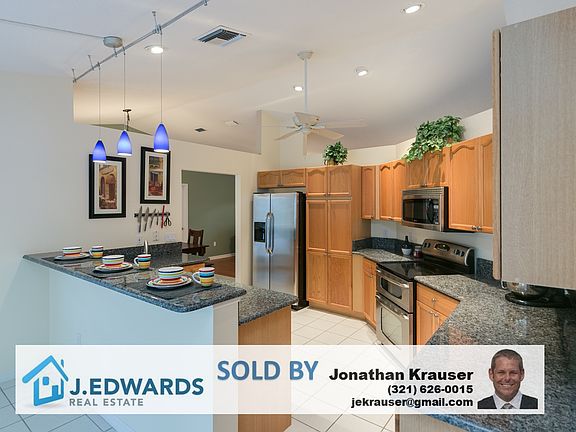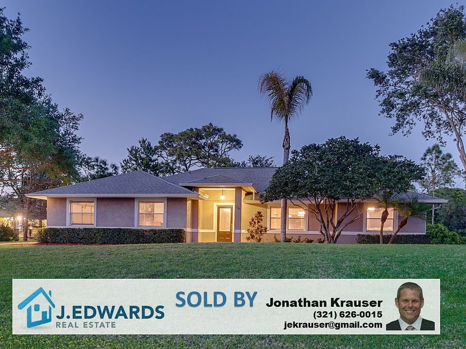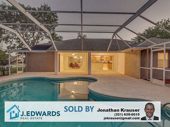 Call 321-626-0015 - Contact Jonathan Krauser directly to find out about my Buyer Rebate if you purchase this home directly through me. Call 321-626-0015 for details. Charming salt water pool home in desirable Windover Farms. Kitchen overlooking the screened-in pool features stainless appliances, oak cabinets, new refrigerator and granite counters. Wood floors in the master suite, living room and family room. Master bath includes a jetted tub and separate shower. Guest bathroom has been renovated (2011). Other features include wood burning fireplace, new gas water heater, newer irrigation pump (2014), updated interior doors (2009), replaced outside AC unit (2016), vaulted ceilings, upgraded ceiling fans, crown molding in the family room and wood blinds. Relax under a 7 ft by 24 ft porch overlooking pool and private backyard with lush landscaping. This home is in move in condition and priced to sell.