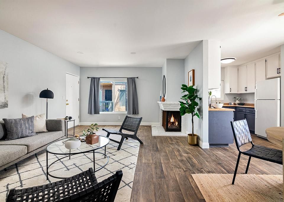 This is one of the only units in the building with brand new AC, new windows, & a new sliding door. Start your day with coffee on your private balcony in the heart of University Heights. This top floor corner unit offers rare peace and privacy with no one above and windows on three sides bringing in beautiful natural light. The spacious layout features a cozy fireplace, a dining area that opens to your own outdoor space, and thoughtful upgrades throughout including new floors, new paint, and new light fixtures. Unlike the other units, this one includes a brand new wall AC unit for yearround comfort, plus new dual pane windows, a sliding glass door, and screen doors that add comfort, quiet, and energy efficiency. There are two generous bedrooms. One has mirrored closets and the other has a walk in, its own private balcony, and a laundry closet with washer and dryer ready for use. Whether you are a first time buyer looking to personalize your space or an investor focused on long term potential, this one checks all the boxes. A private garage in the alley and an additional parking spot out front provide added convenience. You are just a short stroll from buzzing cafes, neighborhood shops, and the peaceful green space at Trolley Barn Park. This is your chance to own in one of San Diego’s most walkable and loved neighborhoods. Do not miss it.