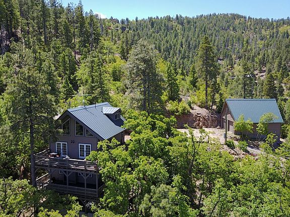 AMAZING VIEWS FROM THIS VERY PRIVATE CABIN NESTLED AMONG THE TALL PINES & BEAUTIFUL OAKS! Come on up and relax on the deck and you won't want to leave! Post & Beam const. 11' ceilings--2-1/4'' thick T&G knotty pine. Hardwood flooring. Granite ctr top w/chiseled edge. 2 pellet stoves. 1 bedroom on main level. 1 bedroom plus office, laundry & 3/4 bath on lower level. 3rd bedroom in loft. Most furniture conveys. Seller will provide list during Buyer's Inspection Period. 22x30 extra deep garage/workshop w/2-8' garage doors (660sf garage, 500sf partially finished upper level guest qtrs/game room, 200sf lower level). 10x10 storage shed w/10' ceiling. 1200 sf of decking. Wiring on deck for speakers. Swing on lower deck conveys.