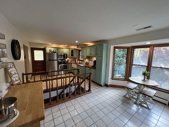 - Features: Eat-in Kitchen, Solid Surface Ctr, Tile Floor, Walkout, Wood Cabinets