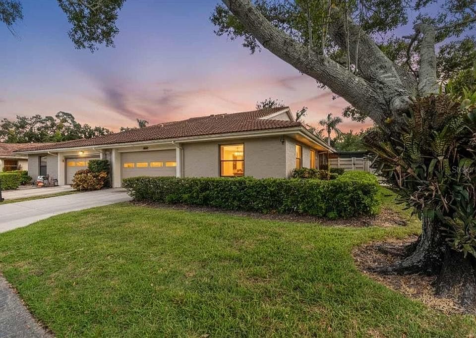 Saddle Up for Style in the 55+ community of Center Gate Villages 5! Welcome to this well-maintained and truly one-of-a-kind 3-bedroom, 2-bath villa nestled in the heart of the coveted Center Gate Estates. With a nod to western charm and a warm, welcoming vibe, this spacious home is perfect for anyone seeking character, comfort, and convenience. Step into a roomy foyer that sets the tone for versatility—your first guest bedroom is to the left, complete with custom built-in shelving and storage, ideal as a den or home office. To the right, the home opens into a western-inspired family room featuring custom saloon doors, a high-top bar setup, and sun-drenched windows—just add a pool table and you’ve got your very own at-home saloon! The open-concept kitchen and living room are made for entertaining, with new quartz countertops, fresh paint, updated lighting, and a stone-faced wood-burning fireplace under soaring cathedral ceilings and a skylight. Sliders lead to the enclosed Florida room, now upgraded with accordion shutters and glass sliders, creating a seamless indoor-outdoor flow. All bedrooms are generously sized with ample closet space, and the primary suite offers a peaceful retreat. As matter of fact, all rooms are spacious including the interior laundry room with new washer and the 2-car garage, both featuring a ton of cabinet space. Enjoy your morning coffee on the long side patio or in the Florida room, both perfect for soaking up the Florida sunshine. Recent updates include: Water Heater (2018), HVAC (2018), Refrigerator (2018), Range (2016), Microwave (2011), Washer (2024) Located just steps from the community pool, and minutes from shopping, dining, hospitals, I-75, beaches, UTC Mall, golf courses, and more—this home offers the hassle-free lifestyle of a maintenance-free community with all the perks of Sarasota living. Priced to sell—don’t miss your chance to own this unique gem! Schedule your showing today and experience the charm for yourself.