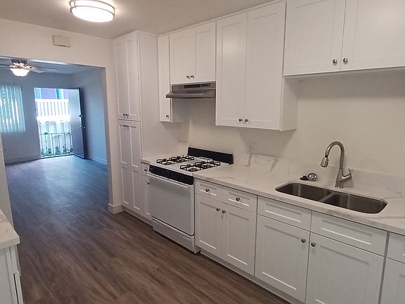 2 Bedroom - 1 Bath downstairs Apartment in quiet 8 unit community in La Mesa Village. Sparkling new kitchen cabinets/counter tops. Dual-pane windows for energy efficiency. New luxury vinyl planking in living room, kitchen hallway & bathroom, new carpet in bedrooms, A/C, off-street parking. 2 blocks from Collier Park and pickle ball courts.