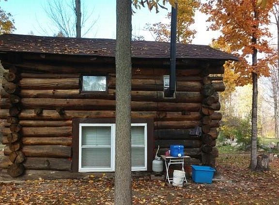 What a neat place to have the family gatherings and parties in the summer months with almost a flat lawn and plenty of room for parking cars and pitching tents. Cabin was built over 25 years ago from the timber on the property and the cabin has a double loft with two single beds and propane lights throughout. Cabin's main heat source is a large wood burning stove for the frosty cold fall nights to warm up next to. The cabin comes fully-furnished and there is a propane three burner cooking stove top. There is a hand dug well on the property which could be utilized. Soils and climate would be acceptable for growing fruit trees and gardening. Current owners have planted food plots on parts of the property in the past. There is an existing tower stand overlooking the two open fields.