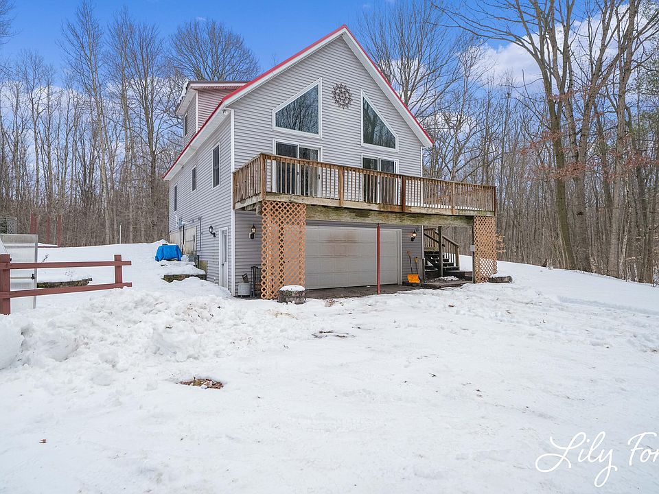 Check out this beauty, start enjoying nature at its finest with this home. Home is nestled back for added privacy on 10 wooded acres. You'll have such beautiful views from all three decks. The home features 3 bedrooms, 3 full baths, with a 2 stall attached garage. This open concept layout has super tall ceilings with amazing views from the windows throughout the home. Updates include central air, fiber optic cable, a safety door and newer flooring. Home is heated by a new furnace with natural gas, and has a wood burner for backup. This house is ready to go and has been well maintained throughout the years. Property is across the street from the very private little Sand Lake. Enjoy the sandy beach area, camping sites, fishing, kayaking and much more.