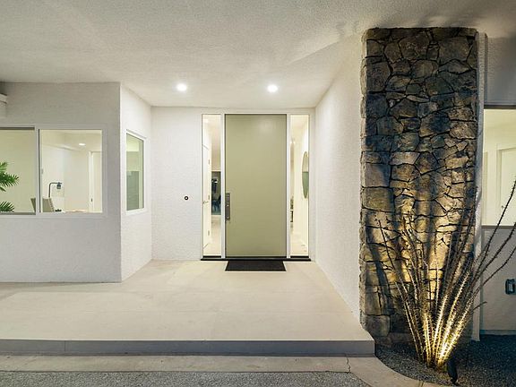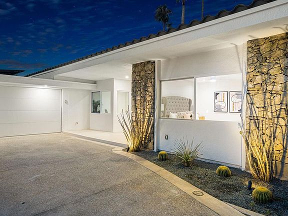 Stunning mid century modern home located in the heart of Indian Wells . This refined luxurious, mid century modern gem represents the epitome of desert luxury living with a complete, top- quality , extensive remodel with attention to every detail and meticulous craftsmanship . All electrical wiring, plumbing systems, AC units and water heater are brand new offering the peace of mind that comes with a newly constructed property. The home offers 4 spacious bedrooms plus an office and 3 baths, an open great room floor plan and a stunning backyard with , putting green, new pebble -tech pool and spa and jaw dropping views of the south mountains . There is a leased solar system for $316/ month and seller states monthly electric bills are zero