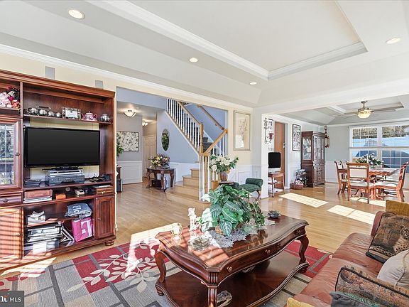 Welcome to 45656 Edge Mill Ct, a stately 5‑bedroom, 3.5‑bath Colonial tucked on a quiet cul‑de‑sac in Great Mills’ desirable Woodland Park. With over 5,600 square feet of premium living space, this home is ideal for entertaining, everyday comfort, and multi‑generational living. Step inside the grand 2‑story foyer, where gleaming hardwood floors, crown molding, and wainscoting set a refined tone. The sun‑filled main level offers a formal dining room with tray ceilings, an inviting living room, and a spacious family room anchored by a gas fireplace, perfect for welcoming friends and family. The gourmet kitchen boasts extended cabinetry, stainless‑steel appliances, and a generous breakfast bar large enough to seat 6–8 comfortably — a natural hub for casual meals or linger‑longer conversations. Adjacent is a bright sun‑drenched eat‑in area framed by arched windows and skylights, creating an airy and welcoming vibe from morning coffee to evening dinners. Upstairs, the luxurious primary suite offers a private sitting area, dual walk‑in closets, and a spa‑inspired en suite featuring a soaking tub, double shower, and dual vanities. Three additional roomy bedrooms complete the upper level. Downstairs, the fully finished basement delivers a 5th bedroom, full bath, a home‑theatre/entertainment room, and a wet bar perfect as a guest retreat, teen‑suite, or private work‑from‑home zone. Outside, enjoy the paver patio and built‑in firepit ideal for crisp fall evenings or summer BBQ nights. A 3‑car garage plus an additional storage shed ensure there’s room for vehicles, gear, and more. Just minutes away is Naval Air Station Patuxent River (NAS Pax River), a major regional employer and hub of naval aviation and defense operations. The home’s ease of commute makes it a strong fit for active‑duty personnel, DoD contractors, or anyone seeking convenient access to base while enjoying a peaceful suburban lifestyle. Convenient to shopping, dining, schools, and recreation