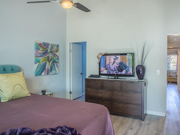 Two bedrooms - both with ensuite baths and blackout curtains, ceiling fans, and Roku TV. Nice-sized closets. Side-by-side washer and dryer in the hallway closet. Good water pressure. Newer AC and heater. New double-paned windows. Gas fireplace and Smart LG TV in the living room with Alexa-enabled Sonos sound. Refrigerator with an icemaker and filtered water. Dishwasher. Gas stove, convection oven, microwave. Nice patio poolside.