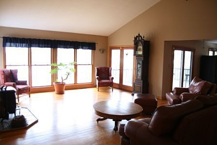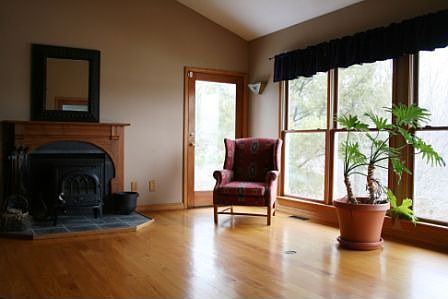 Call today to schedule a good look at this spacious contemporary home on Angel Ridge Road. Home features an open floor plan, with dramatic views to large pond at rear of property. House is privately situated on 5+ acre lot, boasting lots of "useable" flat terrain. Perfect for outdoor types who don't need an entire farm to manage, with lots of room for gardens, orchard, vineyard, a few sheep and goats—you name it! The house itself is solidly-constructed, with hardwood floors and solid-core doors throughout, The open kitchen features granite countertops, newer s/s appliances, along with a large island that make entertaining a breeze. The main living area enjoys great natural sunlight, with vaulted ceiling, woodstove, and easy access to large deck out back. Master BR suite is on the main floor, as is utility room and a convenient first-floor office/library area. Upstairs you'll find an additional 3 BRs and full bath. To top it off, this property boasts a large, wrap-around porch, huge 5-bay garage, paved driveway, and a really nice, inviting, 40' x 10' lap pool. Recent upgrades include newer carpeting, new master bath and bedroom, refinished floors, on-demand hot water heater, and more. Call Russell for an appointment. This one won't last long!