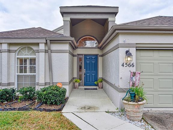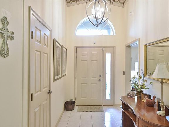 Shows like a model, upgraded hardwood floors, custom top of the line plantation shutters & crown molding throughout.. Covered entry, large tiled foyer, great room with cathedral ceiling, open, light and bright, 2 Solartubes. Tiled fireplace with gorgeous custom surround decorative wood mantel. Spacious eat-in kitchen with custom cabinetry, center island, pantry, stone counter tops, 2 custom glass cabinet doors, pass through window to great room.French door entry to office/den. Master Bedroom with his and hers walk-in closets. Master Bath w/sunken garden tub, separate tiled shower, and double vanity. Guest Bath newly redone and wheelchair accessible. Retractable electric screen on garage door. Alarm system. Covered lanai, vinyl privacy fence, and artificial turf dog walk for the pampered pet.