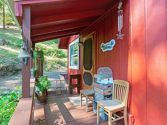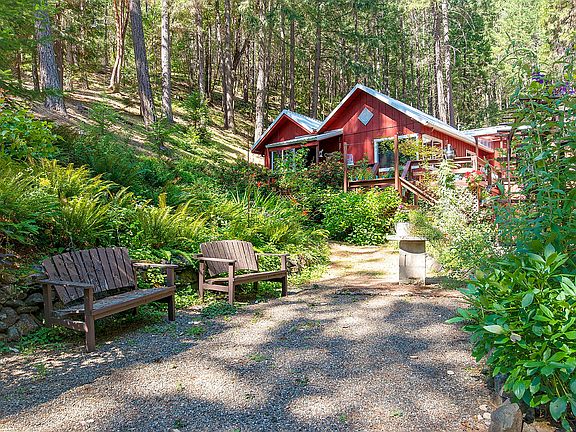 Here's a heavenly slice of Oregon mountains for you to enjoy peace and fresh air. This secluded and private home is a quiet haven. 2 bedrooms, 1 bathroom with a bonus room currently being used as a guest room and craft room. Over 11 acres adjacent to BLM land has mature timber and is minutes away from great fishing on the Rogue River. Enjoy the sunrise on the wrapped porch or from the dining area with lovely knotty pine siding. Beautiful raised flower and garden beds with automatic drip lines. Multiple outbuildings include chicken coop, dog kennel, firewood storage, carport and shed. Private Patio complete with hot tub is perfect for cozy winter nights. Access the hot tub directly from the master bedroom which boasts vaulted ceilings. Enjoy the stunning views from the large corner windows in the living room. New HVAC within past 2 years. Well produces 7.5 GPM as of 7/2020. Septic was pumped and inspected 7/2020. Make this mountain oasis yours.
