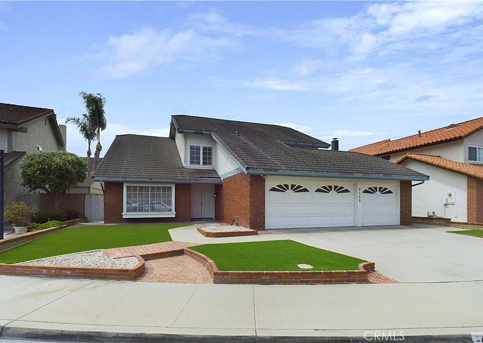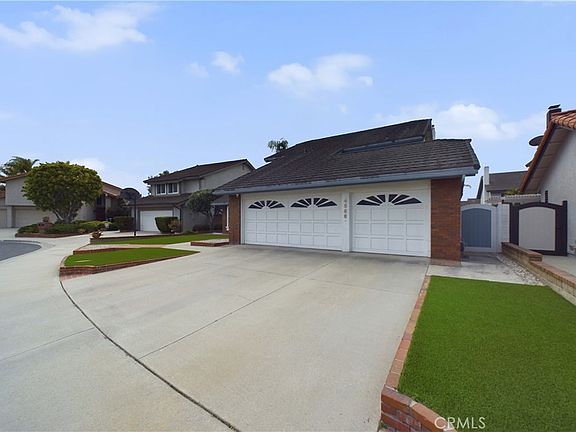 Welcome to 4566 Wellington Ct, a meticulously crafted JM Peters home, where elegance meets functionality in an idyllic cul-de-sac setting. This residence features 4 bedrooms, 3 bathrooms, and 2,837 sq ft of living space thoughtfully laid out over a generous 6,360 sq ft lot. Convenience is key with a coveted downstairs bedroom and bathroom equipped with a shower. As you step inside, the grandeur of high vaulted ceilings greets you, creating a sense of openness and luxury that pervades the home. The eye is immediately drawn to the stunning spiral staircase. Natural light floods the open floor plan, highlighting the seamless flow from one living space to the next, perfect for modern living and entertaining. The remodeled kitchen is a chef's dream, complete with state-of-the-art appliances and ample counter space. There is a daily dining area and a separate formal dining room for your entertaining needs. The family room, warm and inviting with its wood burning fireplace, serves as the heart of the home, while the custom wet bar adds a touch of fun to your gatherings, making entertaining a breeze. Upstairs, the oversized primary suite is a haven of tranquility, featuring a separate retreat/office space with a second fireplace, an ensuite bathroom with dual sinks, a vanity, a soaking tub, and a separate shower, and not one, but two walk-in closets. Central air and heat, a designated laundry room downstairs, and direct access to a 3-car garage enhance the home's functionality. The low-maintenance artificial turf in the front and backyards and a covered patio offer a serene outdoor retreat. Veterans' Park and Award-winning Landell & Arnold Elementary and Lexington Jr High are just a short walk away. Nationally ranked Oxford Academy (testing required), Cypress High School, and Cypress College are just a short drive. This home promises a lifestyle of convenience and leisure. No HOA or Mello Roos. The excellence of its location, combined with the thoughtful design and premium finishes, makes 4566 Wellington Ct a rare gem.