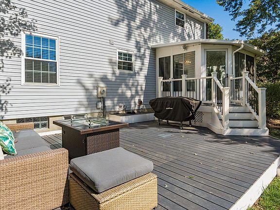 Spacious family roomFire pitSubway tile backsplashStainless steel appliancesGranite countersShade treesNew composite deck