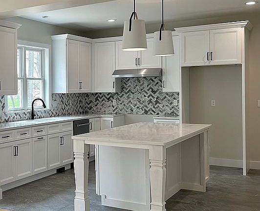 This home features amenities throughout including hardwood flooring and stairway, 9' ceilings, Andersen windows, wood construction cabinetry and quartz countertops, large tiled shower, instant hot water, and central air conditioning. It is located on a quiet street with a private wooded back yard.