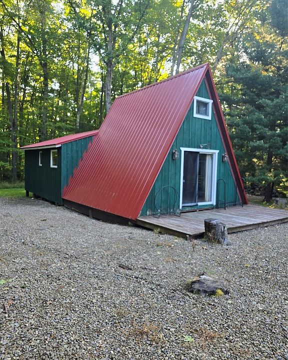 Picture perfect camp on 10 acres. There is still time to secure a camp before hunting is all over, but don't wait any longer. Here is a great "larger than it looks" A frame in a great location in Titusville. Gated Camp community with 3 other camps sharing the acreage. This is not leased land, its deeded property. Super well kept with bedroom and loft! Camp has all utilities.