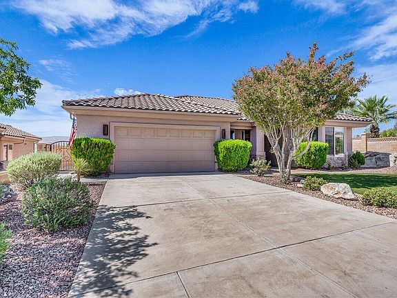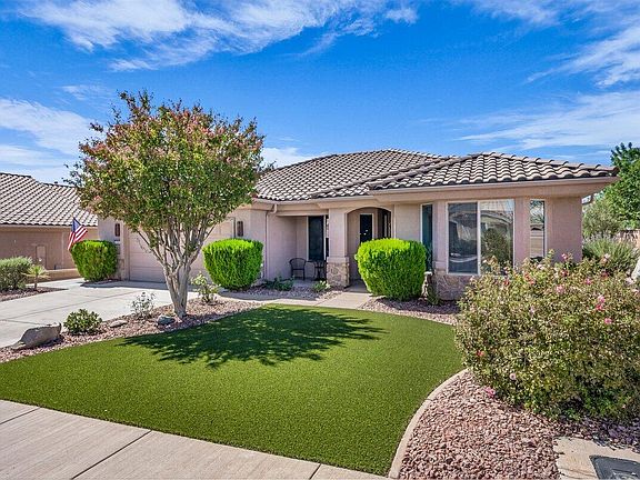 This beautifully maintained Sun River home sits on a desirable corner lot with breathtaking mountain views. The spacious open floor plan showcases granite countertops, updated lighting with ceiling fans throughout, and fresh paint. A cozy gas fireplace, versatile den/office, and large laundry room with ample storage add comfort and convenience. Outside, the spacious backyard offers a large, covered patio and gorgeous mature landscaping, perfect for relaxing or entertaining. Additional highlights include window sun-blocking screens, a reverse osmosis water system, and a garage finished with a sleek epoxy floor. Located in the premier active adult community of Sun River, residents enjoy championship golf, pools, pickleball, a clubhouse with pottery, woodworking, and so much more! Buyer to verify all information, deemed reliable, however buyer to verify all info including utilities, rental restrictions, and HOA information if applicable.