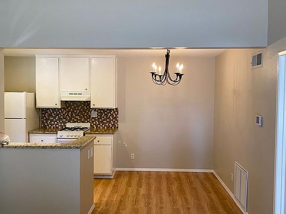 Upgraded 1 bedroom, 1 bath condo in lovely East Simi Valley community. Kitchen has granite counters and glass tile back splash. Hard surface flooring through out. Washer, Dryer and Fridge included (provided without warranty). Water and trash included in rent. Well behaved pet (who doesn't require a yard) will be considered with increased deposit. No Smoking. Community has pool and spa for tenant enjoyment. 1 assigned carport parking space. Available now.