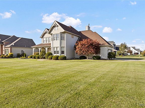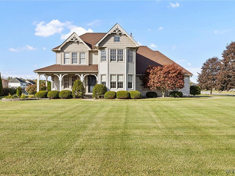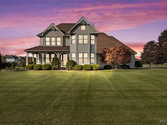 Located in the highly desirable Ridgeview Heights neighborhood in the Town of Pendleton—within the top-rated Starpoint School District—this impeccably maintained Modern Victorian style home offers the perfect combination of space, updates, and a prime location. With nearly 2,500 square feet of open, thoughtfully designed living space, this move-in ready home features four bedrooms and two and a half baths. The bright and airy layout is filled with natural light and includes spacious living and dining areas ideal for gatherings. Beautiful hardwood floors run throughout much of the home, including the dining room (2000), front bedrooms (2001), and primary bedroom (2005). The inviting family room features a gas fireplace surrounded by custom built-in shelving, creating a warm and functional centerpiece for everyday living. The kitchen was fully remodeled in 2019 and showcases stylish finishes with quartz countertops and stainless steel appliances, all included. The primary suite offers a renovated bath with radiant heated floors and a custom walk-in closet, providing a touch of everyday luxury. Additional highlights include first-floor laundry, a tranquil Koi fish pond, rear deck and in-ground sprinkler system, an epoxy-coated garage floor (2020), and a versatile basement perfect for a home theater, gym, or game room.