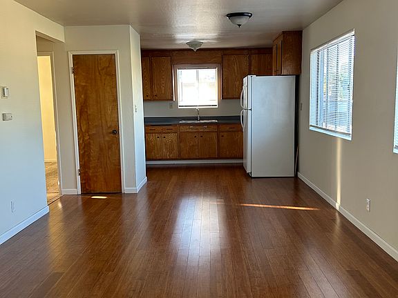 This 2nd floor detached apartment sits just behind the front house and is one of 5 buildings on the property. Quiet neighborhood. Off-street parking. New Bamboo Vinyl floors in kitchen and Livingroom. Large rooms. Walk-in closet.