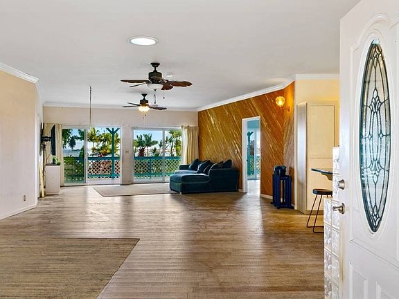Amazing and rare opportunity to own a multi-living dwelling within walking distance from Downtown Hilo and impressive ocean views. Oversized main living area is bright and open with a kitchen, living, dining and multi-use space that expands the entire depth of the house. The main living room has large, double sliding glass doors that fill the back wall with ocean views and lanai access. On one side of the room is the guest bedroom, guest bathroom and second master bedroom with en-suite bathroom. The right side of the room accesses the master bedroom with en-suite and walk-in closet. Ideally designed, the living area, both master suites and the separate maid's quarters have sliding glass door entries onto the huge wrap around lanai. The lanai is deep providing room for a true outdoor living space and overhang to keep it dry and shaded. It wraps three sides of the home with access from the carport and the front yard providing a separate entrance into the second living space. Separate living unit has living room, kitchenette, bedroom and en-suite bathroom. The lot is both easy to maintain and privately located at the end of a small road with no homes behind you to block the views ocean side. A large, producing, mango tree provides both fruit and shade on the back corner of the lot and bananas on the south side. Fully owned photovoltaic system and county water. Your own private oasis only minutes from town.