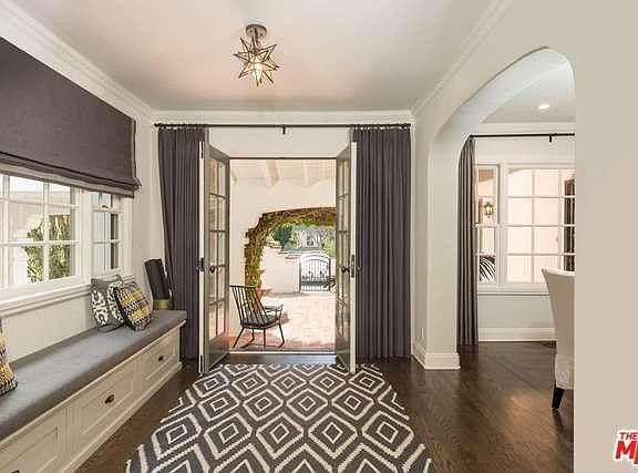 Creative, Intelligent, Reimagined ? Thoughtfully recreated, this North of Montana Romantic Spanish, designed by Cecile Gale, retains the integrity of its heritage while quietly adding contemporary touches for today's lifestyle. The authentic beauty and charm begins as you enter through the dramatically arched gated courtyard with fountain. With hardwood floors throughout, the home is warm and inviting. Living room with fireplace; family room off the new kitchen with eat-in area, and an office complete the main level. A stately staircase with wrought iron handrails leads to the upstairs rooms. The master bedroom with beamed ceilings, fireplace and private bathroom features French doors open to the large, private balcony. There are 3 additional bedrooms upstairs. SoCal sunshine filters through the home with the large French doors leading out to the back brick patio/entertainment area & pool, spa beyond. All of this on a large lot. This house is meticulously thought out and executed