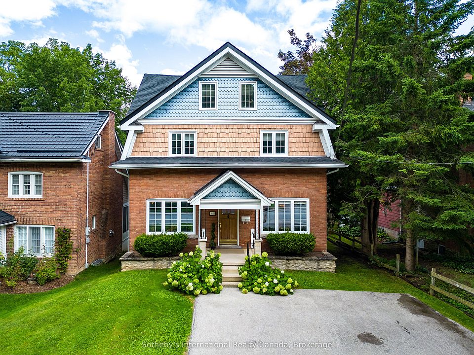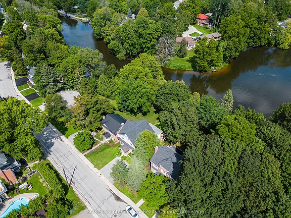 Nestled along the picturesque Sydenham River in the prestigious Millionaire Drive neighborhood, this stunning 4 bedroom, 3-bathroom estate seamlessly combines timeless elegance with modern sophistication. The expansive living room serves as the centerpiece, featuring oversized windows that frame breathtaking river views and flood the space with natural light. Step out onto the balcony an ideal spot for relaxing or entertaining while soaking in the serene river scenery. The main floor boasts custom marble floors with in-floor heating in the dining area and hallways. The elegant dining room, accented by original hardwood built-in cabinets and a designer FLOS light fixture, sets the perfect mood for hosting memorable gatherings. Culinary enthusiasts will appreciate the gourmet kitchen, outfitted with top-of-the-line Miele appliances, including an induction cooktop, built-in coffee machine, and garburator, all illuminated by a luxurious designer light fixture. Upstairs, indulge in the spa-inspired bathroom featuring Italian faucets, in-floor heating, a large glass-enclosed shower with teak floors, and a deep soaker tub for ultimate relaxation. The master suite offers dual custom walk-in closets and elegant cabinetry, creating a tranquil retreat. The spacious basement walkout opens to the backyard, providing stunning river views and versatile space for family living, an in-law suite, or private sanctuary. Outside, nicely landscaped grounds lead directly to the river via a set of stairs perfect for outdoor pursuits and peaceful enjoyment. Additional highlights include parking for four vehicles, a Tesla charger, and recent upgrades such as a 2024 roof and new eavestrough 2025, blending historic charm with contemporary comfort. Located in one of Owen Sounds most sought-after neighborhoods, just moments from local amenities, this exceptional riverfront estate presents a rare opportunity to experience luxury living at its finest.