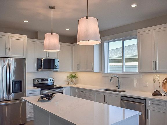 Level entry rancher layoutOpen concept livingCozy gas fireplaceChef inspired kitchenQuartz countertopsAmple cabinetryFull appliance package
