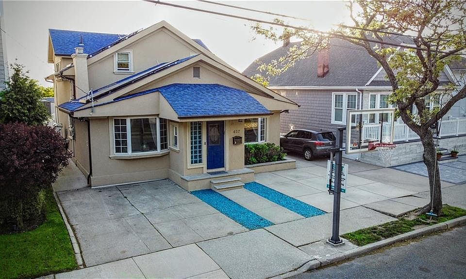 Welcome to this beautifully renovated oversized beach home invites you in with all the bells and whistles on one of the quietest blocks in the area. The entire exterior and roof of this large home are fully insulated with 6inches open-cell SPRAY FOAM Insulation. The home is partially powered by solar panels mounted on the roof which cuts down electrical bills by 50-75%. The first floor has an open-concept Living / Dining Area with Vaulted Ceilings, 3 Bedrooms, 2 Full Bathrooms, and a very large Eat-In Kitchen with top-of-the-line appliances. Eight Foot Solid Doors, Fireplace, Radiant Heat Flooring for those cold NY Winters, Split Unit ACs in every room. The 2nd floor has 2 very large bedrooms with oversized closets each having a private full bathroom. With additional recreational area and full laundry room. The basement is a large open space used for storage. Water is heated on demand using a tankless water heater. The backyard you will find one of the most exclusive features found at only a few houses in the area. The house lot is 40x100 plus 40x55 extra land, totaling 40x155 (6200sq/foot lot). Including custom built island, perfect for BBQs and parties as well as a built-in custom Firepit. Total Sq footage is 2,496 sq/ft not counting the basement, 3,356 sq/ft with basement. Enough parking out front for 5 cars is tight but fits. The home was fully renovated in 2014, with a new roof, plumbing, electricity, tiles, bathrooms, exterior Stucco, spray foam insulations, and Solar panels added in 2016.