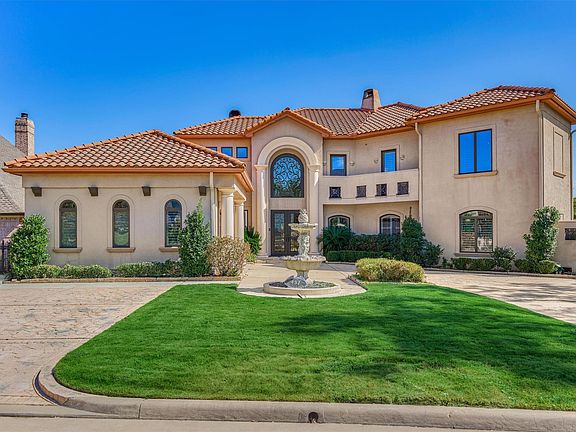 Outdoor kitchenGame room with balconyCustom mediterranean-style homeBoat slipDesigner carpetOversized two-car garageTwo primary suites