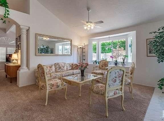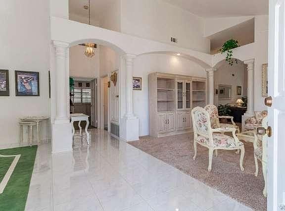 Here is a rare opportunity! This home is completely move in ready. Amazing unobstructed views of the golf course and beyond can be seen from this single story home. Some of the many features include energy efficient windows (some with tinted glass), upgraded all electric kitchen with upgraded custom cabinets. The master bath has whirlpool tub. The fireplace is in the family room. Ceiling fans are in master bedroom, family room, and formal living room. Outside has a variety of fruit trees, palms, Orchids, Sago Palm Trumpet Trees, many roses, hibiscus, hydrangeas and more flowering plants. The terraced hill has efficient automatic watering. There are 2 patios. There's lots of storage in the garage around every wall. This is truly a MOVE IN READY HOME.
