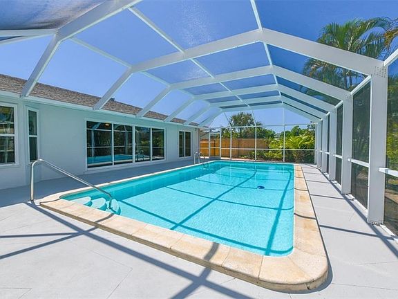 Rarely available 4/3 waterfront pool home with DIRECT ACCESS to Sarasota Bay. Designed for the family with an active lifestyle, the open plan layout features large rooms (including a 25' x 21' Great Room) and sliders that open onto an expansive caged pool area. If you're tired of small pools the resemble glorified bath tubs, you'll love swimming in this solar heated 30' x 15' pool. The second bedroom has a walk-in closet and designated bathroom - perfect for a MULTI-GENERATIONAL family. Brand NEW carpeting in guest bedroom wing. Windows and sliders are updated throughout with energy efficient double pane glass and the back yard is fenced and landscaped for enhanced privacy. Home has an oversized garage and lots of closet space. Property sits directly across from the Donald Ross designed Sara Bay Country Club - one of the premiere golf courses in the region - and is mid-way between Sarasota and Bradenton, convenient to world class beaches, great shopping, and all the cultural facilities Sarasota is noted for.