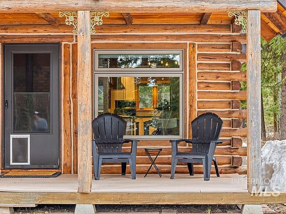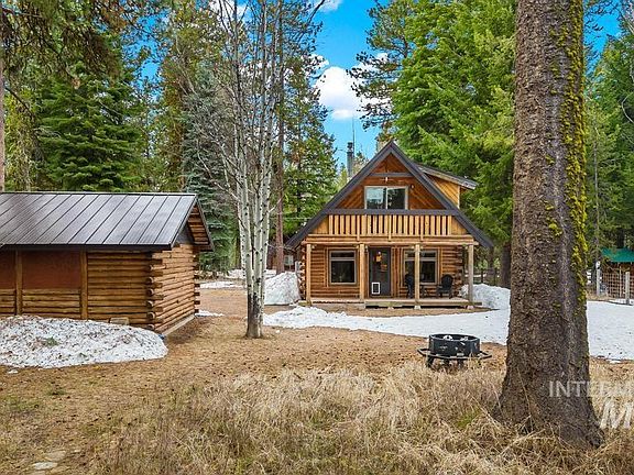 Welcome to 457 Moon Drive, a beautifully updated 2-bed, 2-bath quintessential log cabin nestled on nearly half an acre, just 10 minutes outside of McCall. This adorable cabin seamlessly blends rustic charm w/modern comforts. Recent upgrades include a newer metal roof, a fully remodeled primary bathrm featuring a tiled shower & new laminate flooring in primary suite. 2017 renovation gave the kitchen a refresh including concrete countertops, cabinetry, & SS appliances. Main level bathrm brings warmth & comfort w/tiled radiant heat floors & full tiled walk-in shower. Exposed wood beams throughout the cabin give it a mountain rustic feel. Cozy up in front of the iconic fireplace in the winter. Imagine yourself sitting on the front or back porch while you immerse yourself in the peace & tranquility of the forest. Vaulted ceilings upstairs create an airy open feel, w/built-in storage & access to upstairs balcony. Detached 2-car garage offers ample room for vehicles, toys, or hobbies. Close to all things McCall!