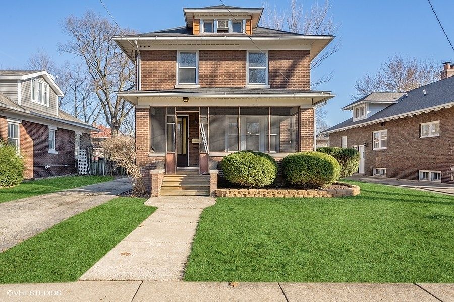 Classic American Four Square well-crafted home located in historic Palace District. Wide lot with side drive, as you enter the home you will be greeted to an enclosed screened front porch that serves as a tranquil spot to enjoy the summer nights. The interior layout is open with a wonderful flow. Hardwood floors in living room and dining room, adorned with light. The kitchen has been remodeled with 42 inch shaker style cabinets with quartz counter top. New double door fridge, stove, and built in microwave. Well-appointed first floor bedroom with master bath, features walk-in shower. The second floor features three spacious, bright bedrooms. Fully remodeled bath on the second floor. Third floor you will find a finished attic. Lower level features large finished basement with good ceiling height. New heat/AC. Awesome spacious yard with 2 car garage. One of the best deals in Aurora, just in time for the holidays. This home is full of character!!