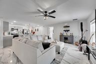 This home comes with solar panels and an FPL EV charger--your total electric cost (including the solar lease) averages just $200/month with unlimited EV charging. Better than new! This 2022 Majestic model offers 4 bedrooms + den, 2 baths, and a 2-car garage in a solid CBS build. Upgrades include quartz ...