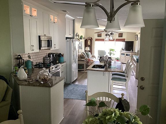 Double wide,updated kitchen with new cabinets,new laminated floors,11 new vinyl windows installed,dining area,2 full living rooms,lanai has central air installed,7000 watt generator included, this is a 55 and older community,1 member of the family has to be at least 48 years old and pass a background check
