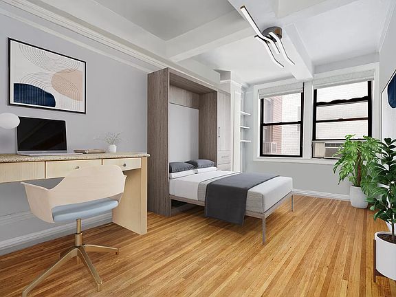 This cozy apartment is furnished with sofa/Murphy bed, which turns the living room into a bedroom in seconds. The Murphy bed is also equipped with remote control lighting and side storage. The apt has huge Elfa designed walk in closet, custom designed kitchen and breakfast bar with microwave/convection oven. 72 inch Flat screen included. Addison Hall is a classic prewar including high beamed ceils, & friendly 24 hour staff. Its near the vibrant Lincoln Square and Clinton neighborhoods. You have extensive choices nearby for dining, transportation & entertainment with Central Park within a few minutes walk. This established coop building has a 24 Doorman, live-in Super, a large renovated laundry room plus a bike and storage room. The building is pet friendly and also permits pied-a-terre's and co-purchasing & 2 year sublet after 1 year of residence.