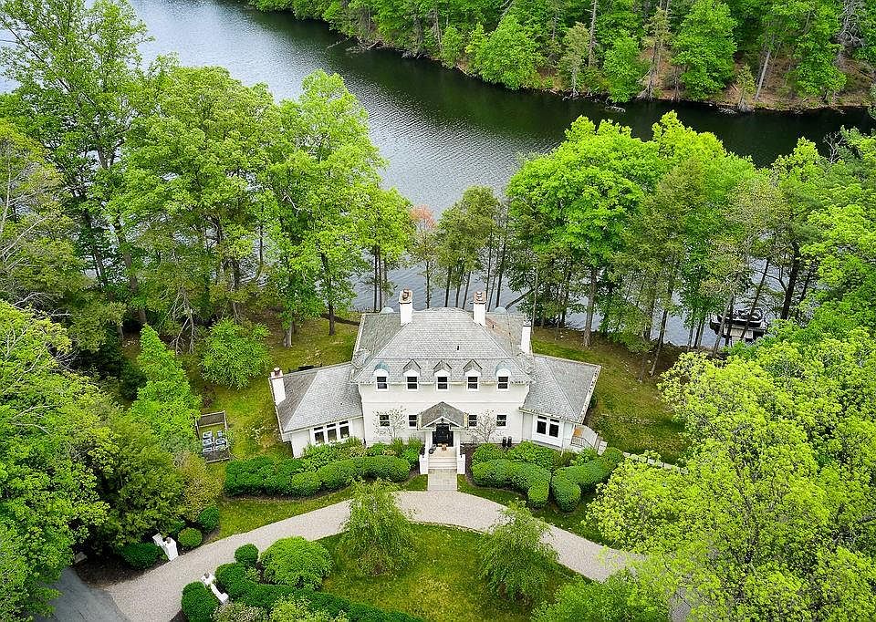 Private lakefront contemporary home on 4.5 acres on Tuxedo Lake. Four bedrooms, 4 baths & two half baths. Dramatic high ceilings and stunning water views from nearly every room. Open kitchen with family room and dining area. Formal dining room with fireplace. Library with fireplace. Living room with French doors, stone floors, and fireplace. Main floor bedroom with a full bath and a half bath for guests. Upper level with three bedrooms and three baths. Primary suite with fireplace, sitting room, large bath and spacious walk-in closet. Lower level with wet bar, spa with stone floors, walk-in wine cellar, a large gym, full bath, laundry and storage. Elegant gardens, mature trees and a lawn that wraps around the property. Two car garage and circular drive. There is a stone boat dock landing to launch your boat which is included in the sale. The house and gardens have been updated and refreshed over the last 18 months. Additional Information: Amenities:Storage,HeatingFuel:Oil Above Ground,ParkingFeatures:2 Car Attached,