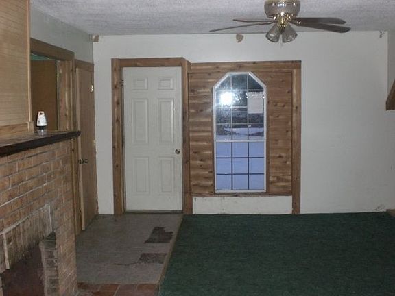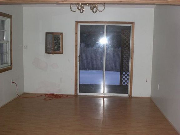 Exterior Features: Siding: Fair condition. Windows: In place. Soffits and Eaves: In place. SF: Unknown. Patio/Porch: Rear patio. Roof: Asphalt Shingle. Driveway: Concrete. Interior Features: Living Room: Carpet, white walls, wood trim, fireplace, ceiling fan. Dining Room: Pergo floors, white walls and wood trim. Kitchen: Vinyl floors, cabinets, counter-tops. Bathroom: Tub and toilet intact. Bedroom: (1) Carpet, white walls and closet space. (2) Painted walls, carpet, closet space. (3) Green walls, carpet and closet space. (Loft Room) Carpet, white walls and trim. Basement: None, Mechanics: Hot Water Tank. Garage: None.