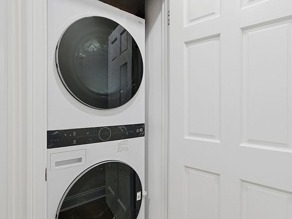 On the parlor level, you'll find the main kitchen with white oak cabinetry, quartz countertops, a 36" Wolf Range and Bosch appliances. The dining area opens onto a large private deck overlooking the landscaped garden, complete with a brand-new Weber Genesis grill.