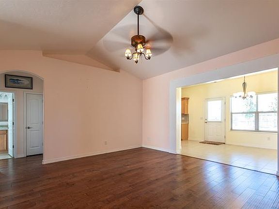 This is it! Wonderful 3 bedroom, 2 bath, 2 car garage home with beautiful birch wood floors in the living room and master bedroom. Upgrades galore in the kitchen: newer appliances, tile counters and custom backsplash that runs all the way to the floor behind the French door refrigerator, new Kohler sink and Delta faucet, large pantry, crown molding on cabinets, heavy duty ¾ hp garbage disposal. New chandelier in dining room. Custom storm doors. Did I say vaulted ceilings? Master bedroom has a ceiling fan and walk-in closet. Master bath has two sinks, walk-in shower and large linen closet. Guest bath also has a walk-in shower. Fresh paint inside and out. Stucco replaced 2 years ago. Fully fenced, beautifully landscaped yard ready for your party with the expanded patio and louvered pergola with a ceiling fan. New garage door opener. New water heater. Solaris owned. Low utility bills!