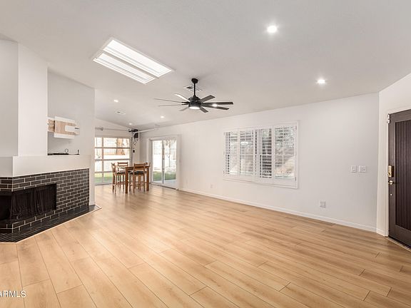 Prime Ahwatukee location! Single level, 3 bed 2 bath home that sits on an oversized 10,145 sq ft lot w/ an RV gate, RV parking slab in front & backyard. The kitchen is open to the family room & recently renovated. Modern Fireplace w/ glass tile. Luxury Vinyl Plank floors throughout. Stainless steel appliances, quartz counters w/ bar stool seating & separate eating area. Wet bar area & large glass garage door that opens to the backyard. The primary suite has French doors that give private backyard access w/ a large walk-in closet. Plantation shutters & dual pane windows. Close to I-10, The Pointe South Mountain, hiking & walking Trails & A+ Rated Schools