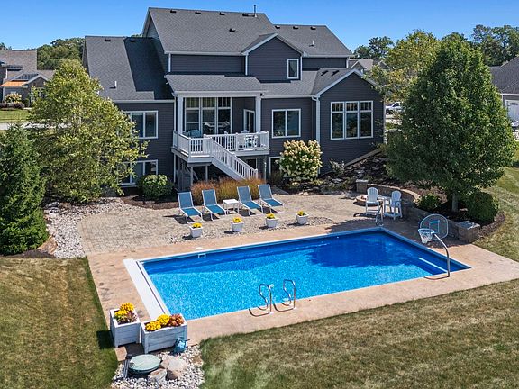 Are you looking for a spacious retreat with exquisite features? Look no further than this custom built five bedroom home in upscale Hawthorne Park Estates! Step through the front door and let the natural light and soft colors draw you into the formal living room. Round the corner into the open concept custom kitchen with leathered granite countertops, tile backsplash, convenient farmhouse style sink and custom Harlan cabinetry with dovetail drawers and soft close hardware. Sneak a peak at the backyard oasis as you make your way to the cozy family room with quaint fireplace, transom windows and custom ceiling detail. The main floor primary suite is a nice size with custom on suite bathroom and extra large walk in closet! Upstairs you will find a bedroom with on suite bathroom and two additional bedroom that share a Jack-and-Jill style bathroom. In the daylight lower level you will find a massive recreational space, kitchenette and bar, media area, fifth bedroom, full bathroom and loads of storage space! Outside you will find a maintenance free composite deck, massive patio area and an athletic style pool with stamped concrete surround! Located on a pond lot and cul-de-sac street in the prestigious Northwest Allen County School district. Mere minutes from Parkview and Interstate 69. Why build when you can buy a place that is like new! Priced to sell at $824,900!