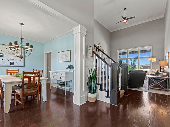 - Ceiling-9+, Beamed Ceilings, Walk-In Closet(s), Stone Counters, Entrance Foyer, Kitchen Island, Open Floorplan, Double Vanity, Stand Up Shower, Tub/Shower Combination, Main Level Bedroom Suite, Formal Dining Room, Custom Cabinetry